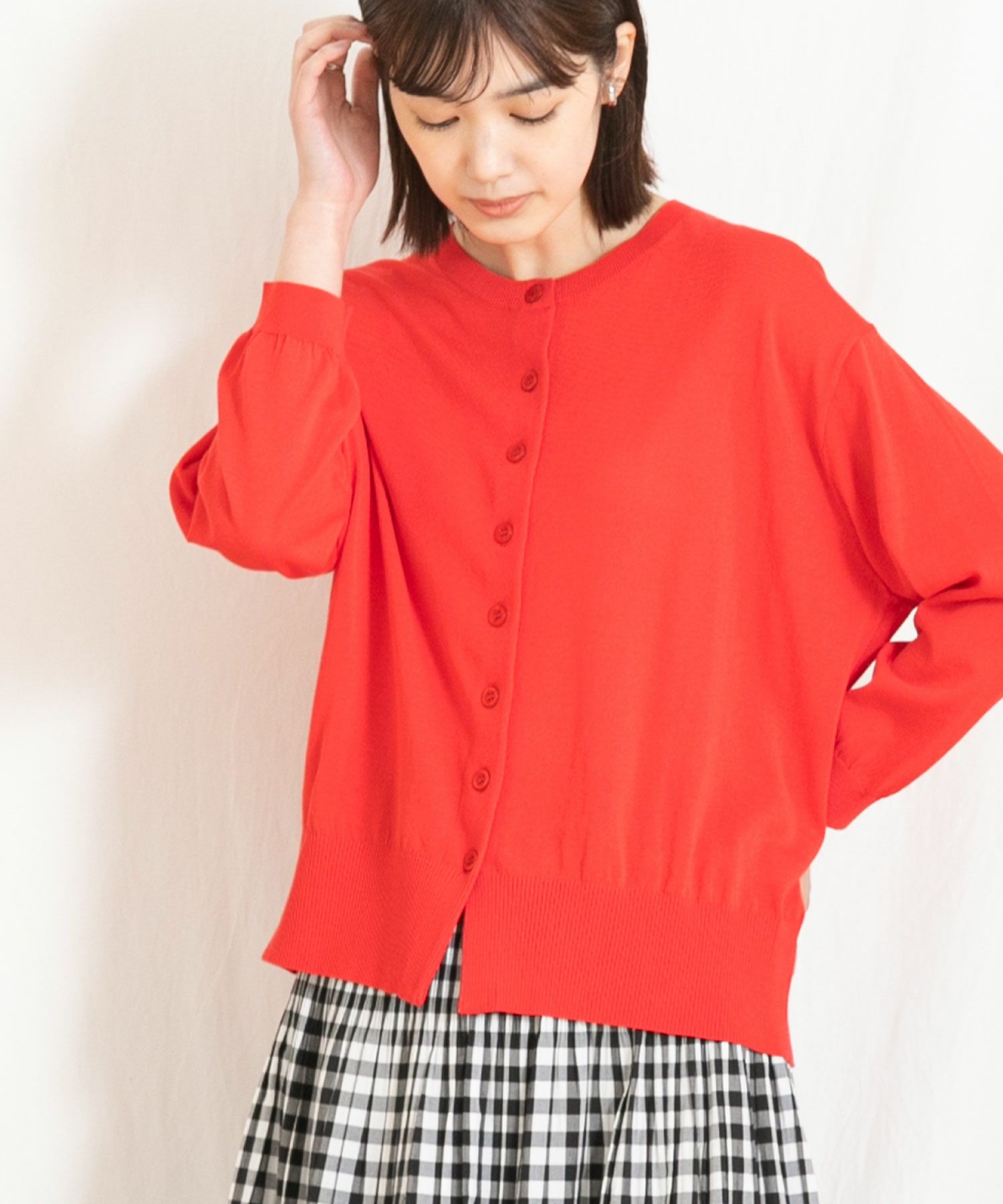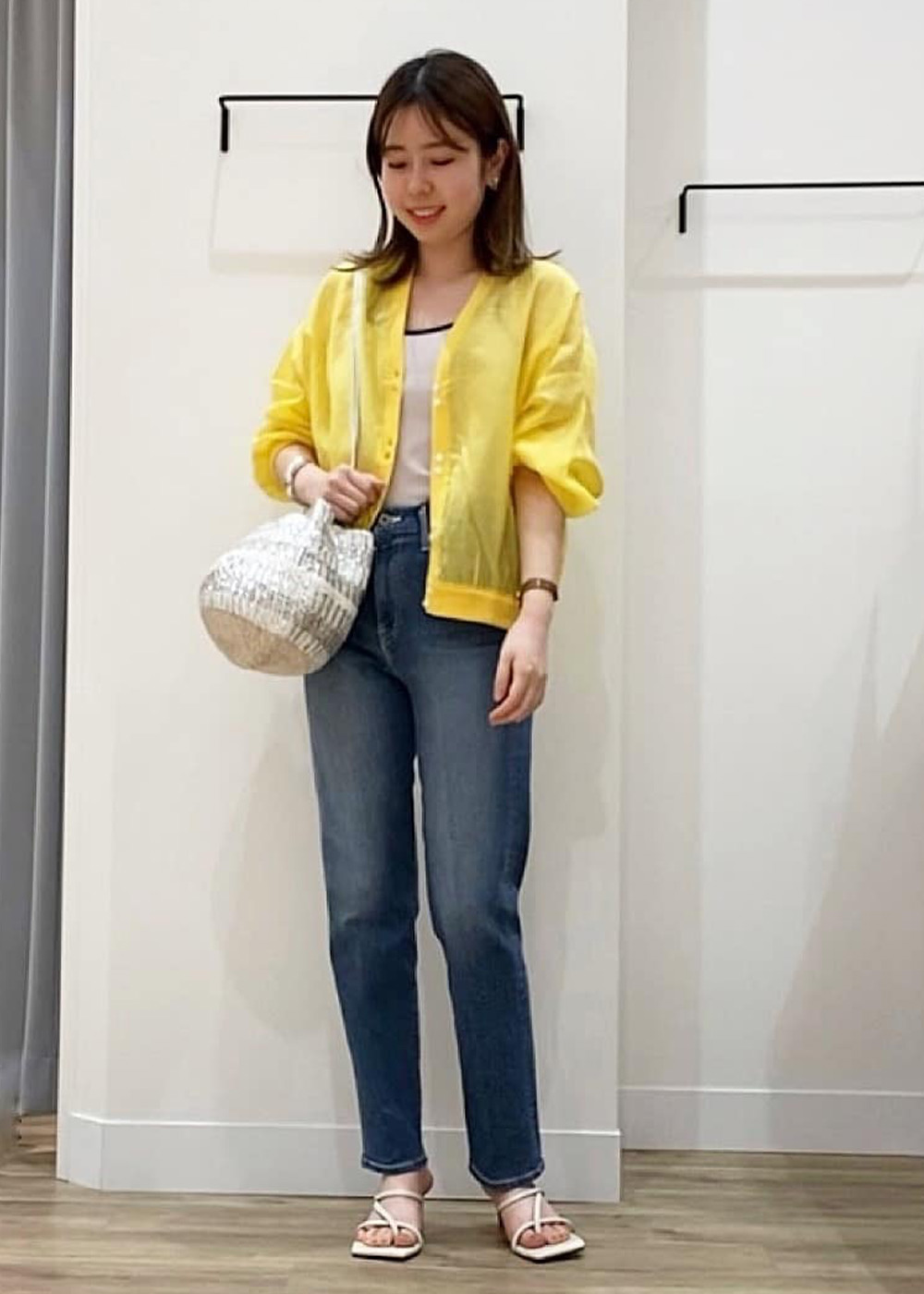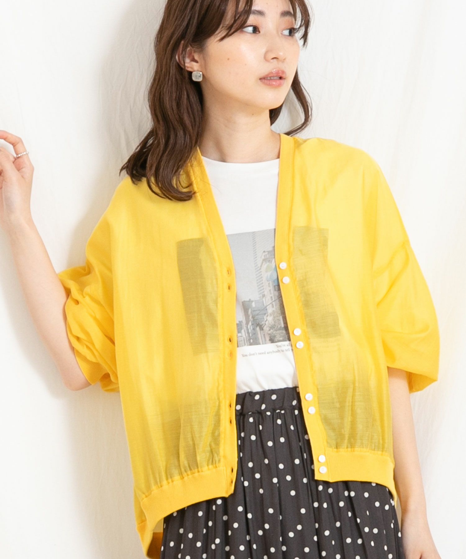 色鮮やかなイエローが目を惹くカーディガンは、さらっとした肌触りで着心地が良いですよ。シアー感があり、上品に着て頂けます!