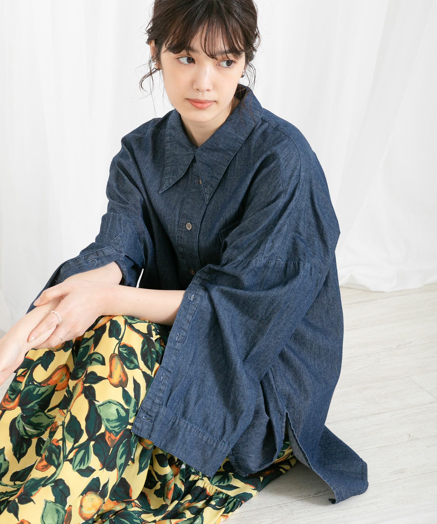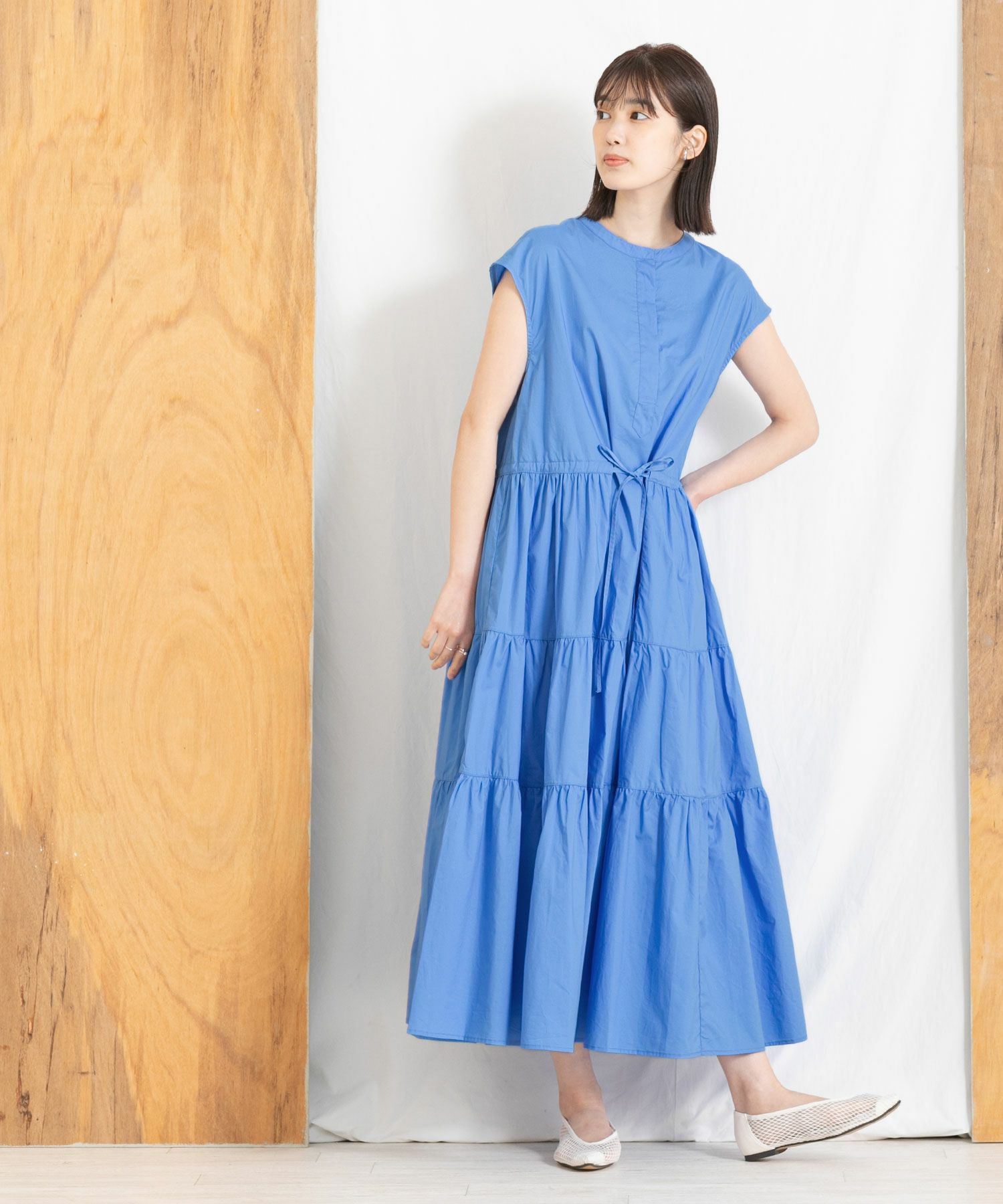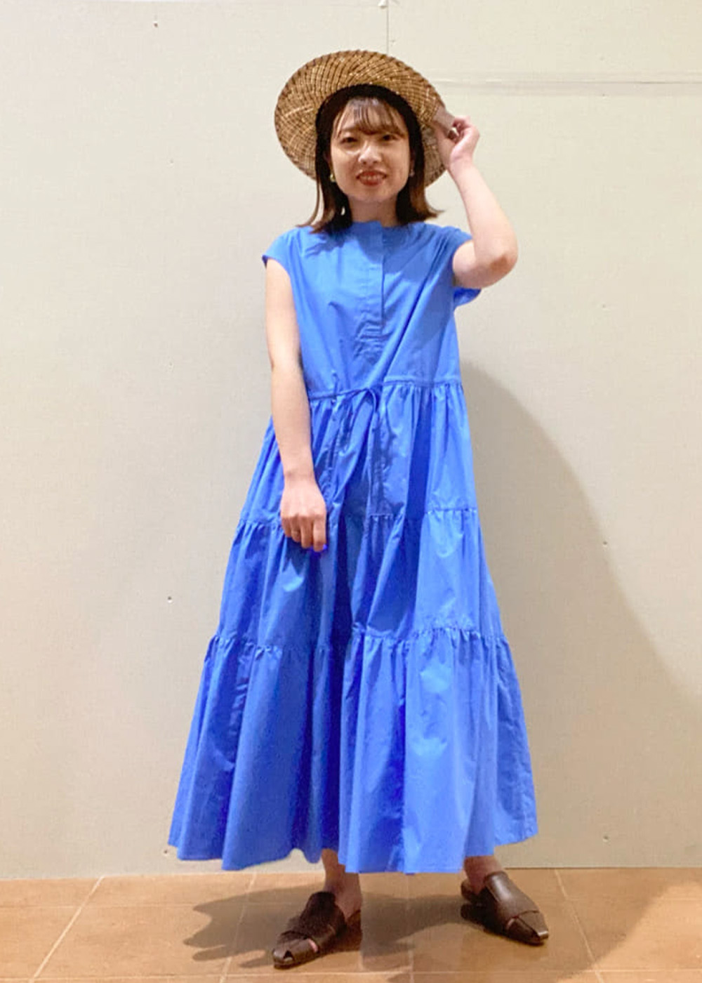 カラーワンピで夏先取りコーデ!シャリ感のあるサラッとした肌触りで暑い夏にもピッタリ。麻100%の清涼感あるシャツを合わせて、カジュアルダウンしました。