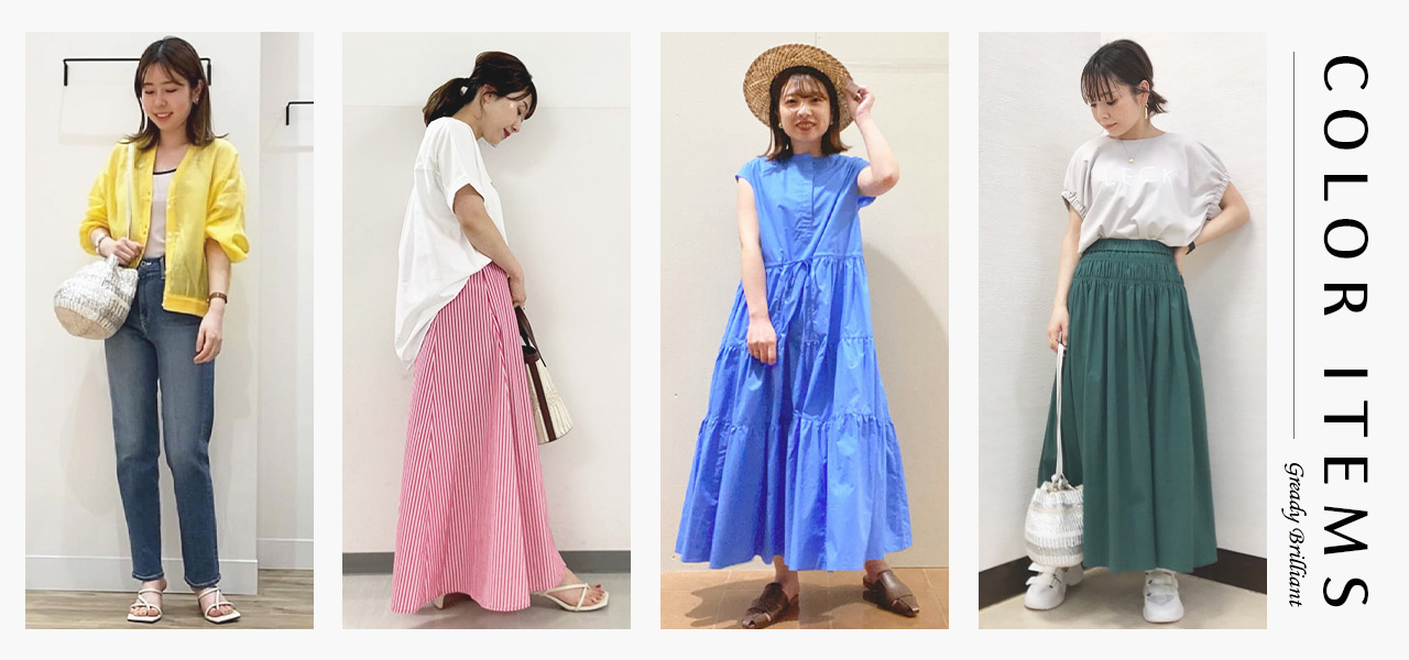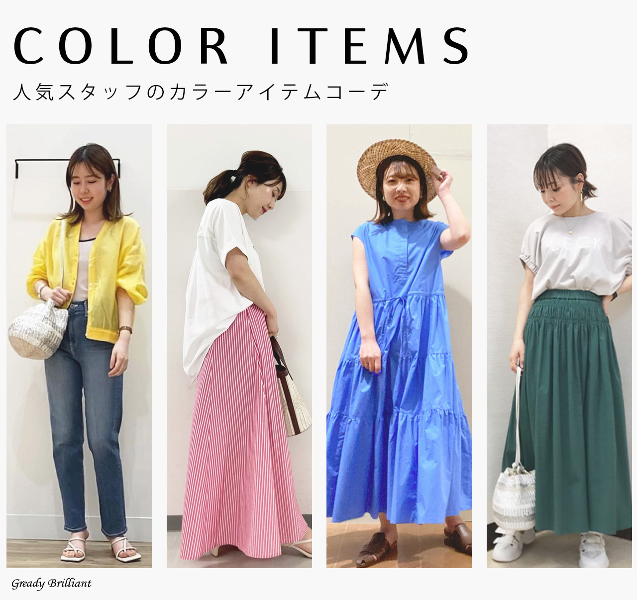 夏に向けて今から準備したいのは、着るだけで気持ちが明るくなるカラーアイテム!人気スタッフのカラーアイテムを使ったコーディネートをご紹介します。
