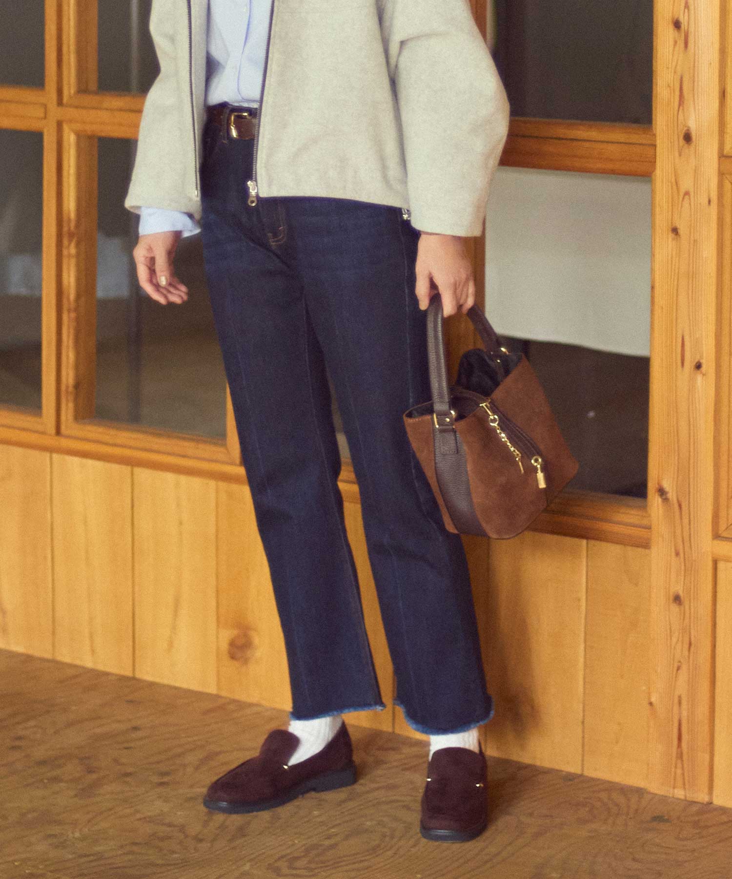 カーリーファーがリュクスな気分を高めてくれるジャケット。裏面はスエードをボンディングしており、表裏リバーシブルで違った着こなしをお楽しみいただけます。コロンとしたシルエットが、見た目にも着心地的にもリラックス感のある一着です。