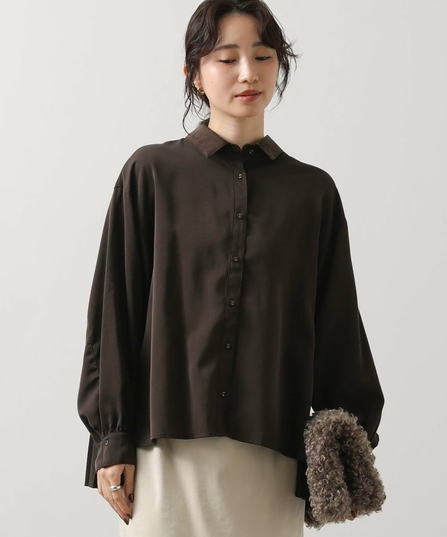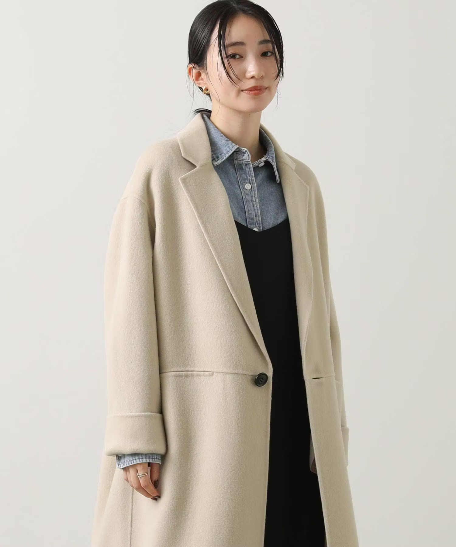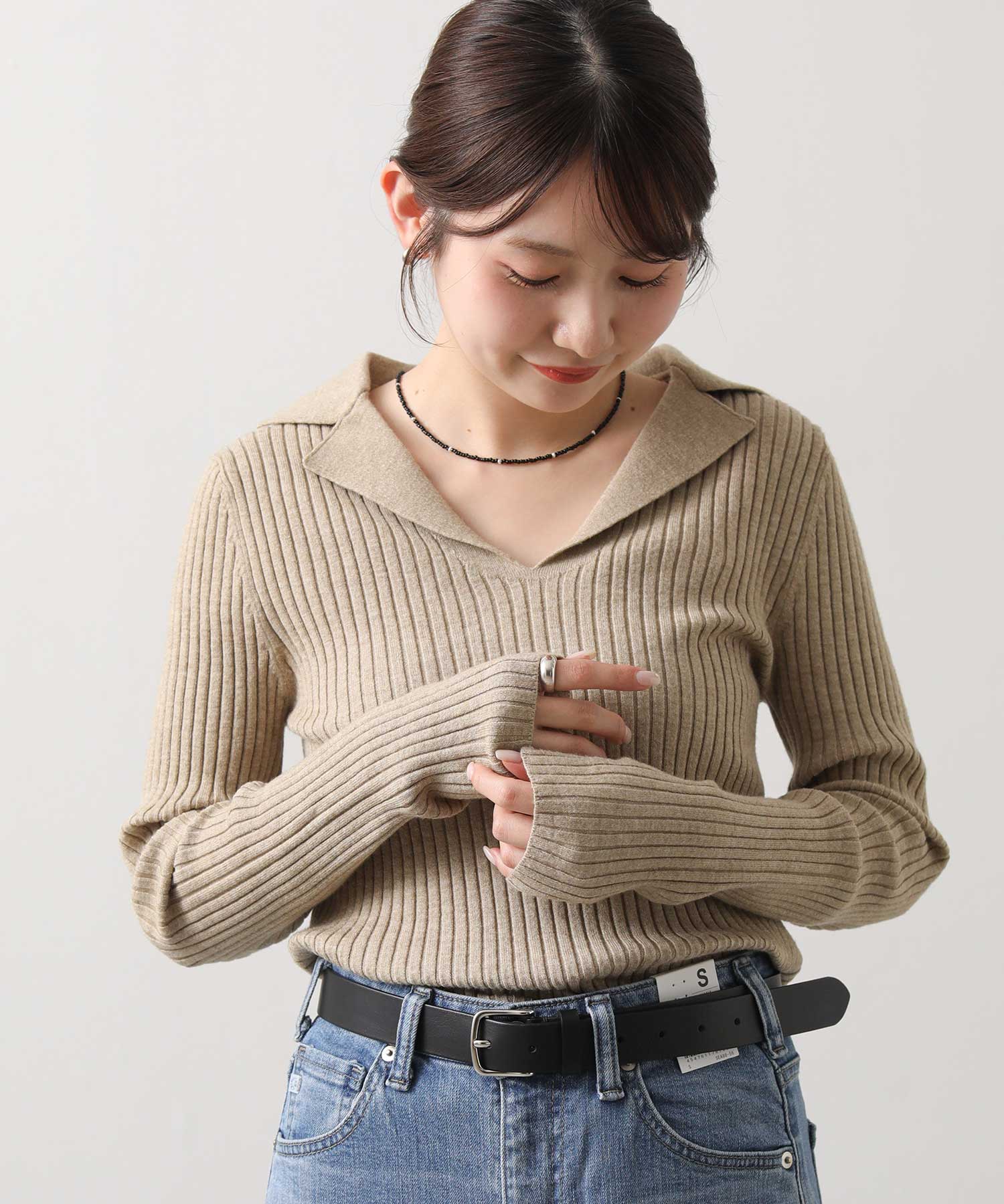 セールの終わりに買い足したいのは春をほんのり感じるアイテム。ふんわり柔らかな編地と柔らかいカラーでとても使いやすいニットは、春に向けて綿シャツをレイヤードするのもおすすめです。まだまだ寒いので防寒しつつ、色や素材感で春に向けて準備したいですね!