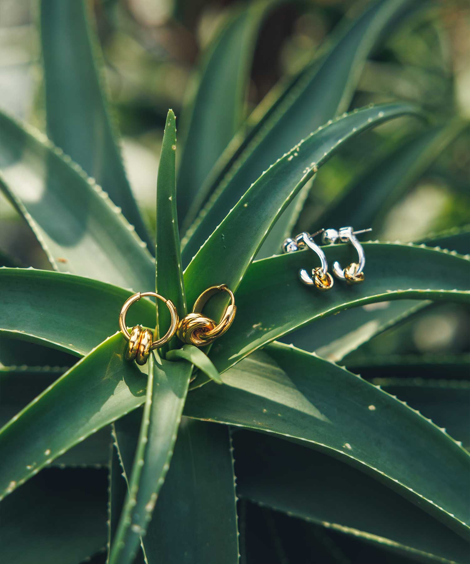 春の装いにさりげない華やぎを添えるアクセサリー。ゴールドやシルバーをMIXして奥行きのあるスタイルに。