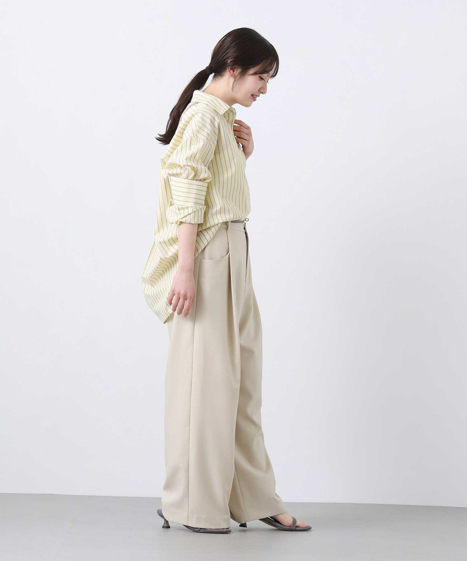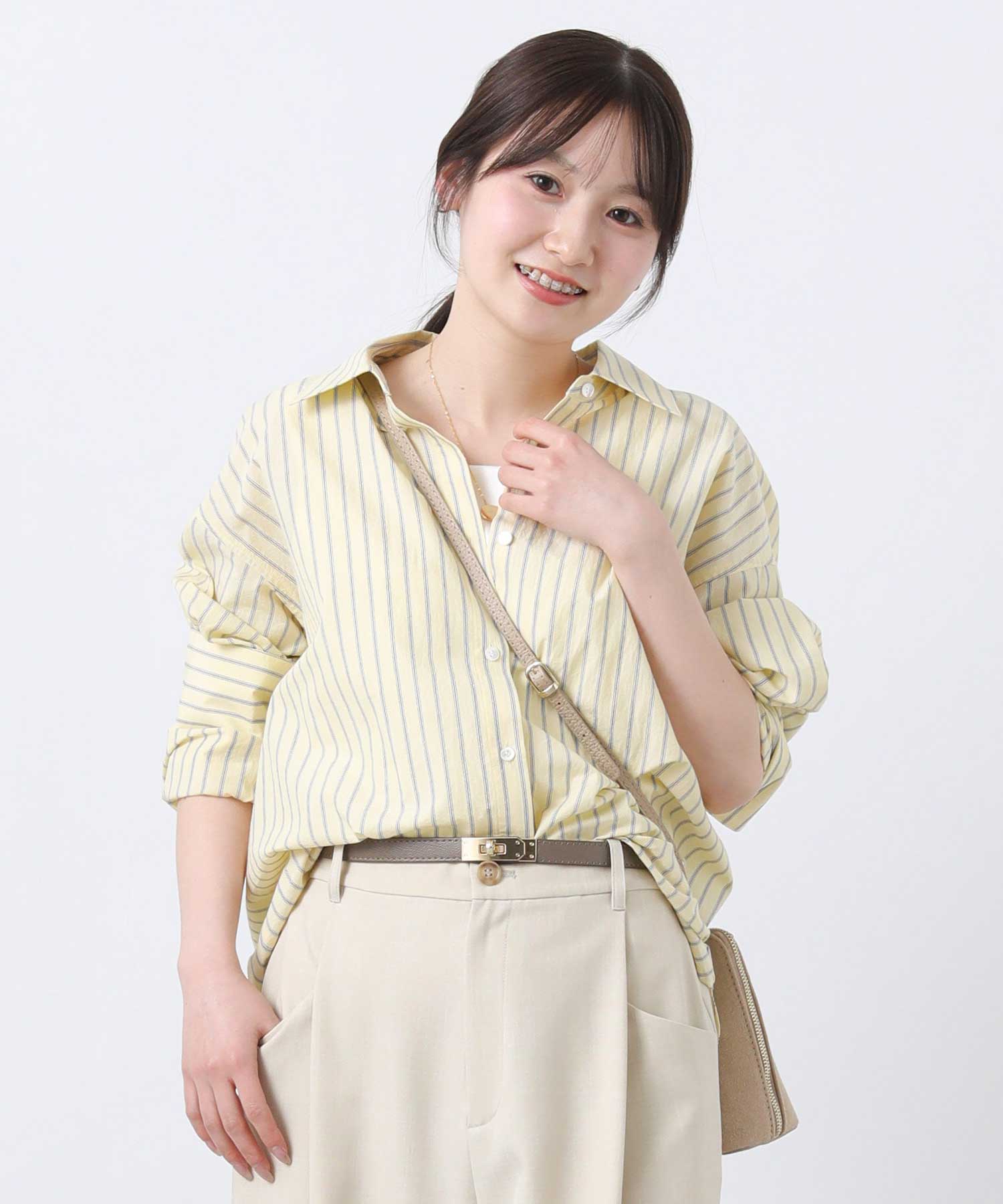 GWは、天気のいい日にピクニックや遊園地でアクティブに楽しみたいです。配色がオシャレなストライプシャツをメインに、軽い着心地のパンツを合わせて、きれいめだけど動きやすいスタイルにまとめました。さらりとしたトロピカル生地のパンツは、これからの季節に一枚持っておきたいアイテムです。