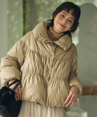 元々白いダウンを探していたのですが、グレージュの色味で、光沢感があり、レザーっぽくも見えます! 生地にとろみがあり、リアルダウン80パーセント入っているので、とても軽くて暖かいです。 下の絞りでショート丈やミドル丈に変更もできて、価格以上の商品です。
