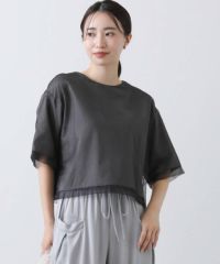 店舗でグレージュを購入。すごく軽い生地です。表面は艶っぽいシアー素材でオシャレ。丈が短めでスカート、パンツどちらにも合うので キレイ目にもカジュアルにも着れます⭕ -