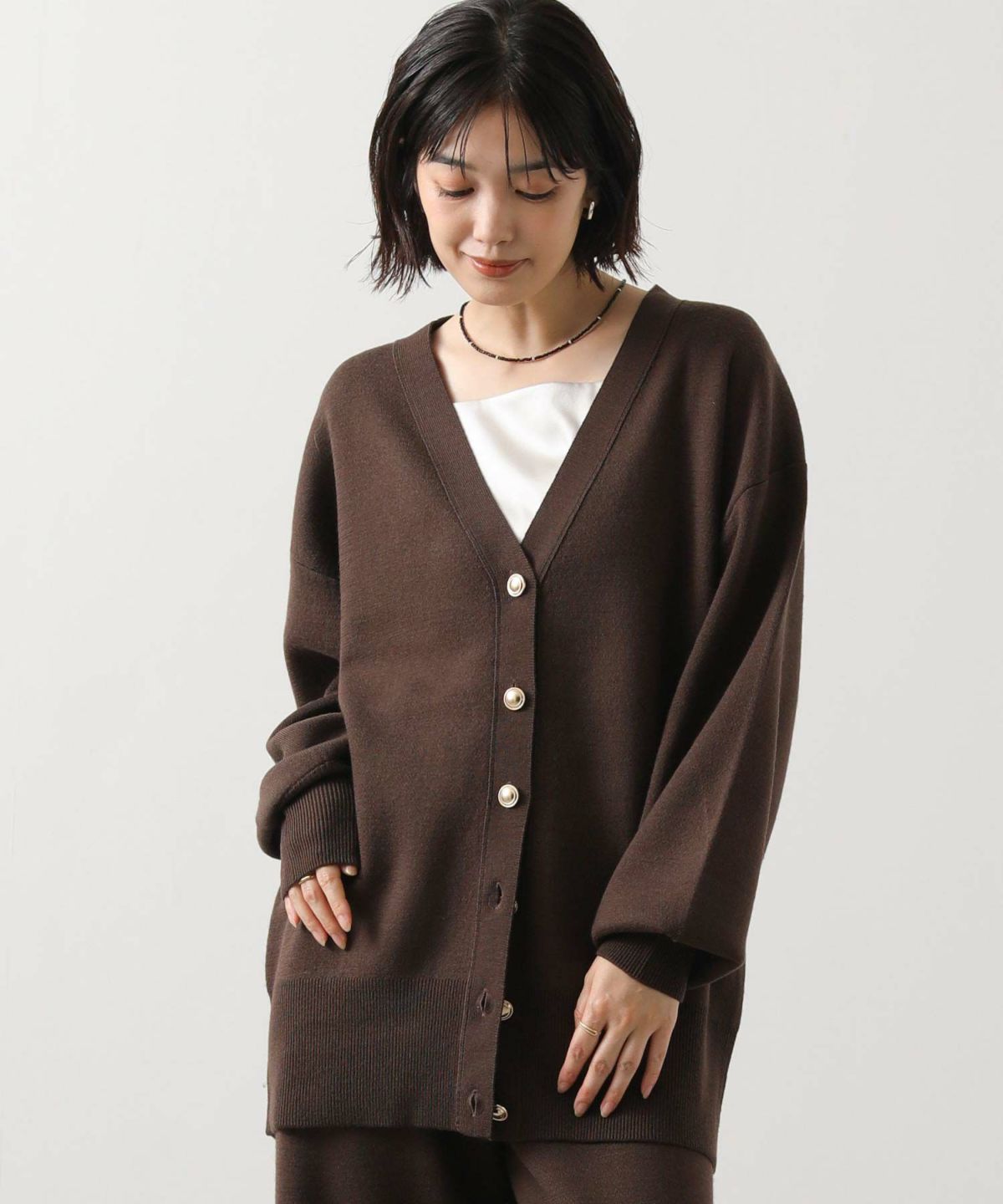 他の画像を見る Gready Brilliant【2026年3月24日AM10:00で販売終了】ウール100スムースVネックカーディガン 定価 ¥ 20,900 のところ ¥ 8,360 税込 カートに入れる お気に入りに登録する MORE