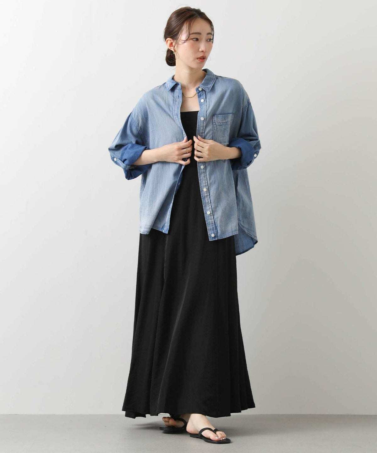 シアーデニム長袖シャツ