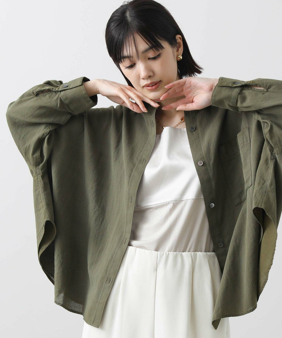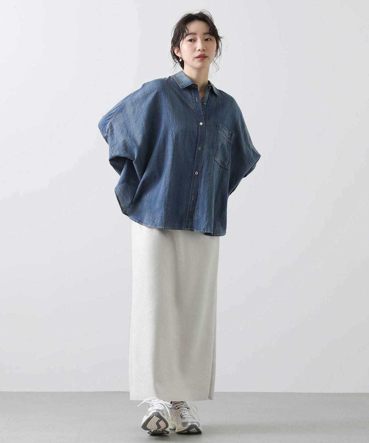 ドルマンデニム長袖シャツ