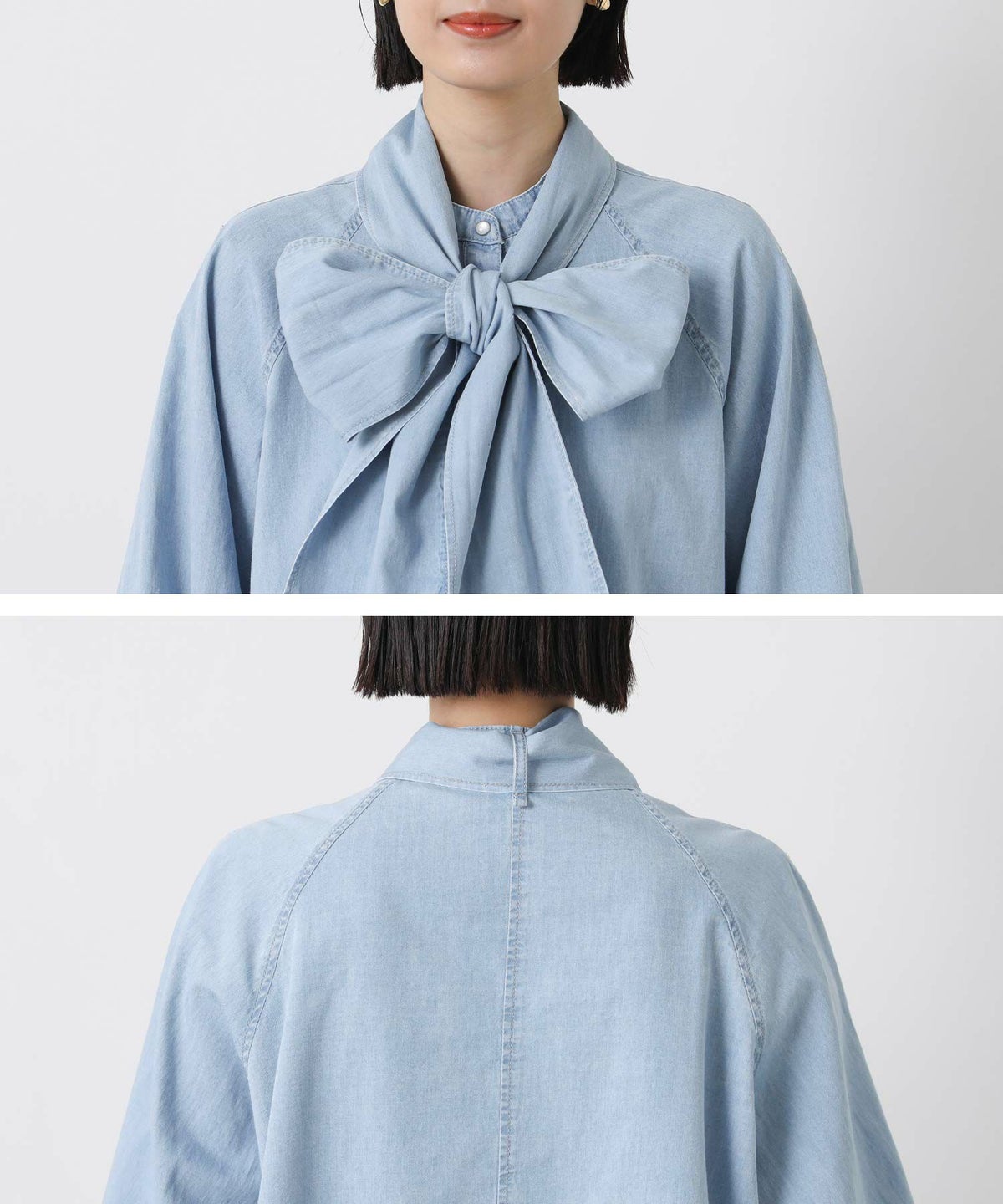 LUデニムリボンブラウス