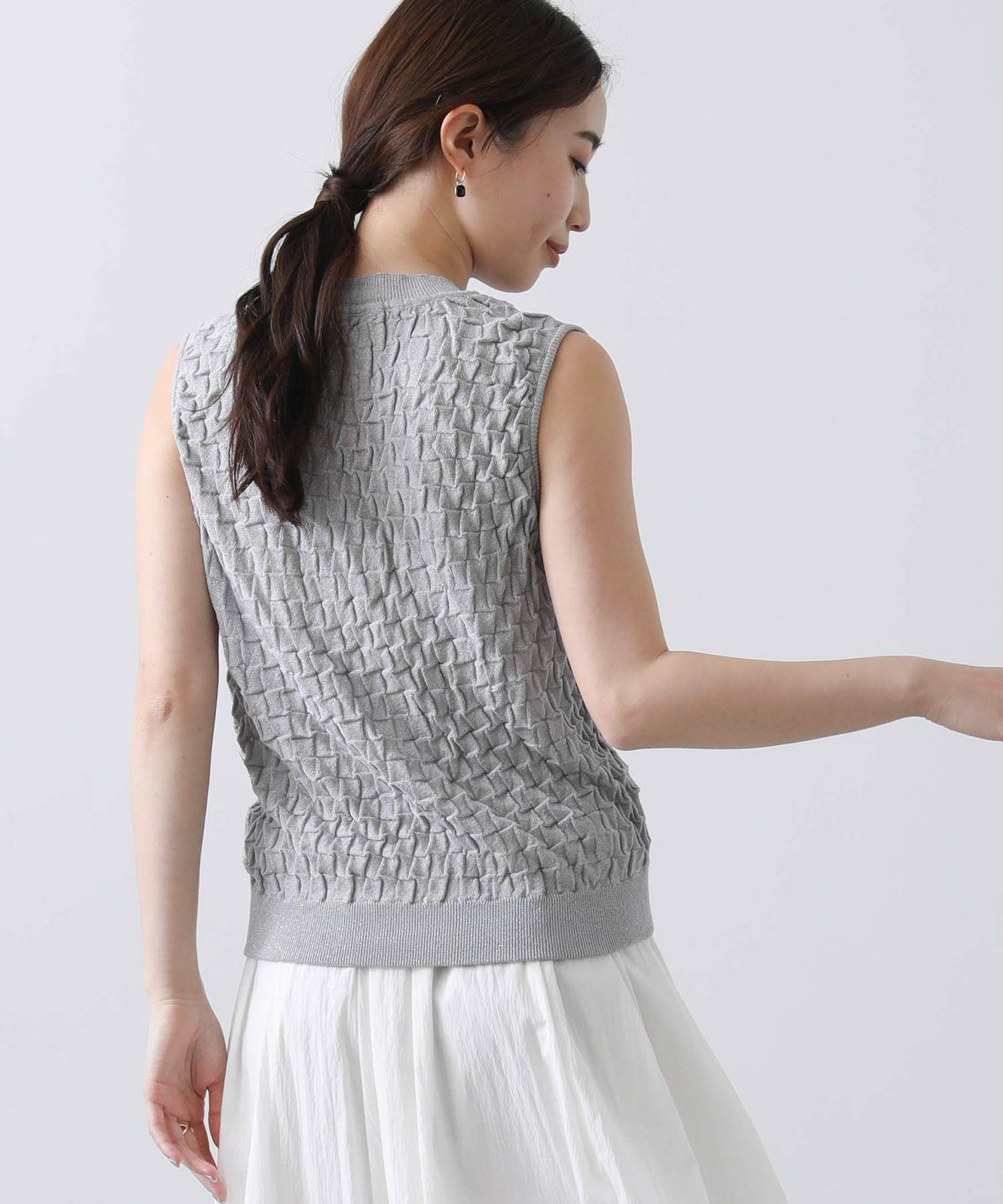 他の画像を見る 2点10%OFFクーポン対象 Gready Brilliant【2026年4月ファミリーセール対象商品】ラメポコポコ編みノースリーブニット 定価 ¥ 12,100 のところ ¥ 6,655 税込 カートに入れる お気に入りに登録する MORE