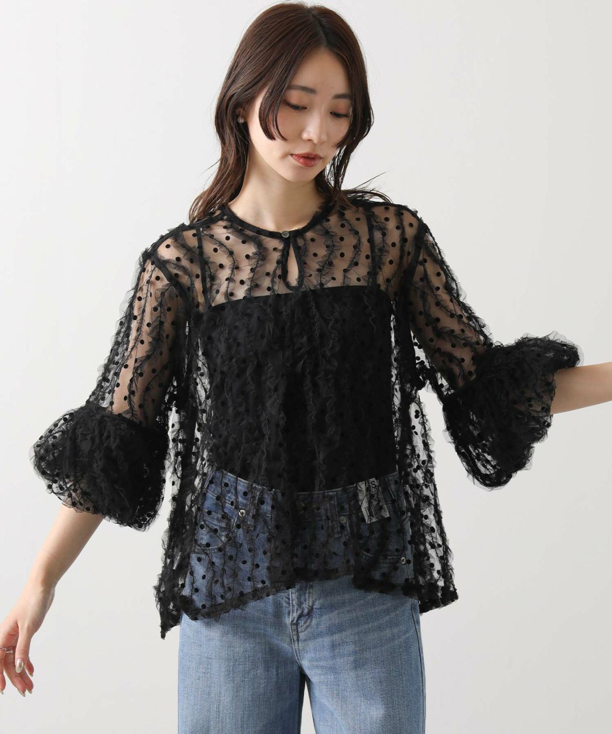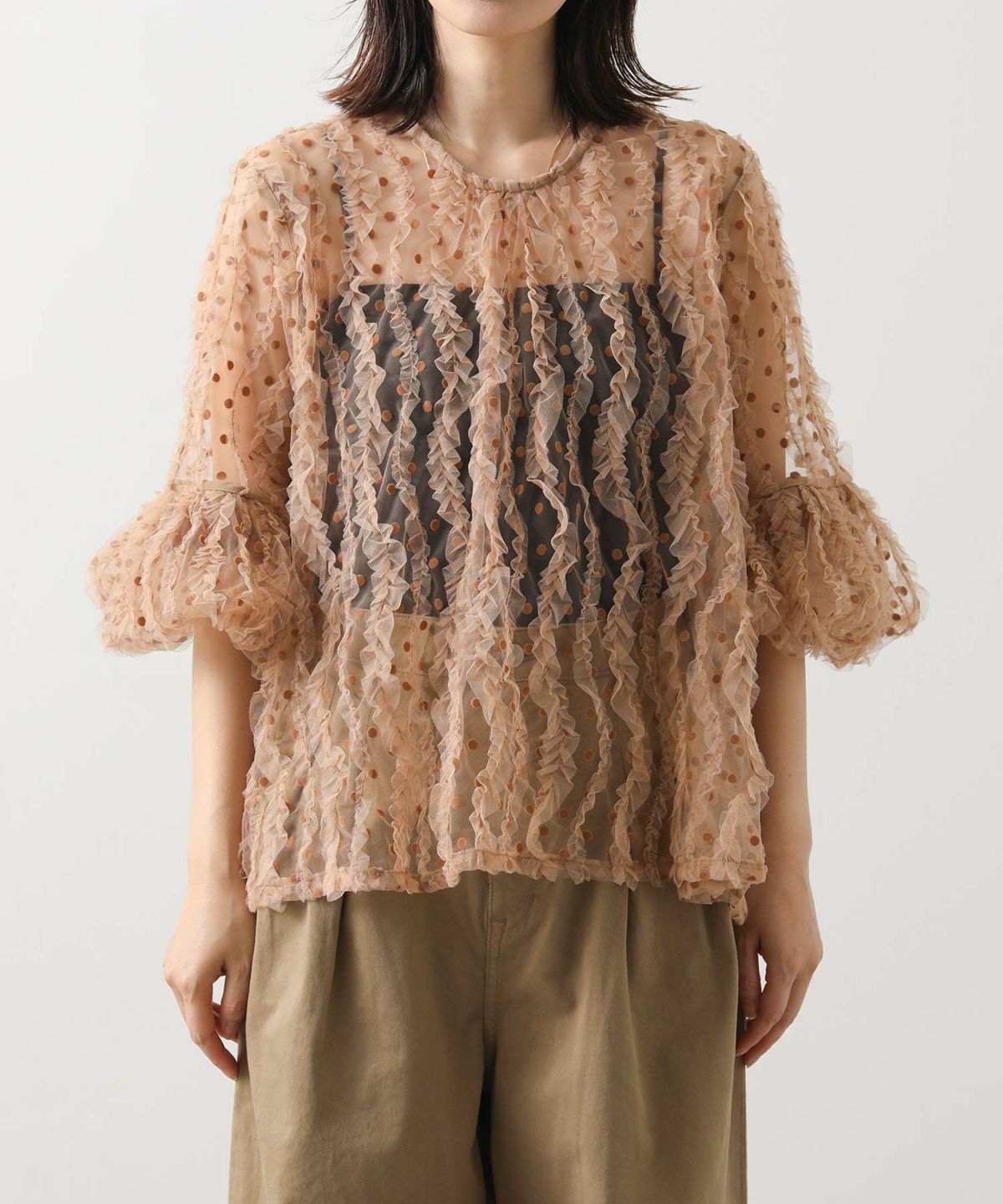 他の画像を見る 2点10%3点20%オフクーポン対象 Gready Brilliants.ドットチュールパフ5分袖ブラウス 定価 ¥ 17,600 のところ ¥ 7,040 税込 カートに入れる お気に入りに登録する MORE