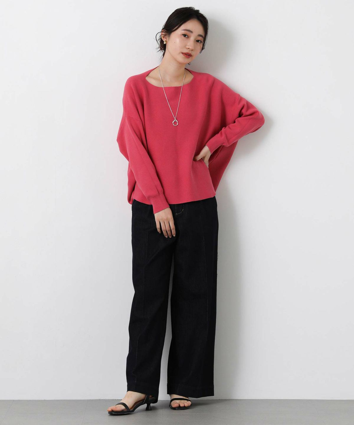 コットンスムース編ボートネックニット