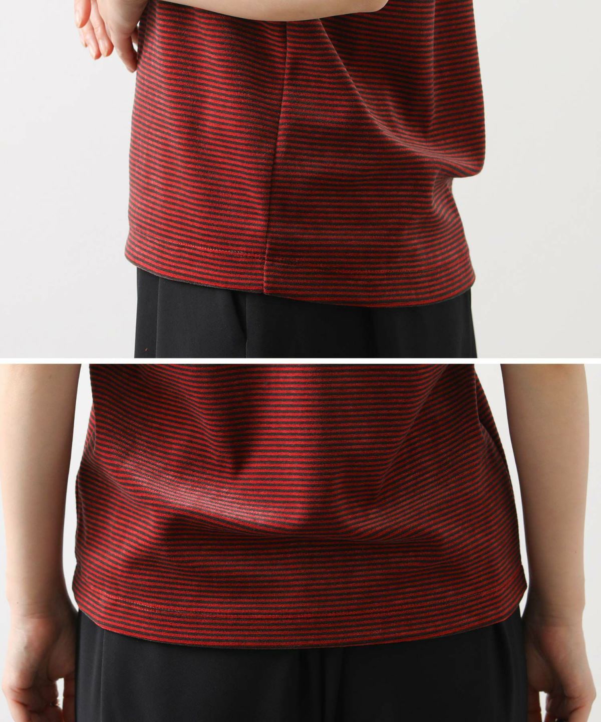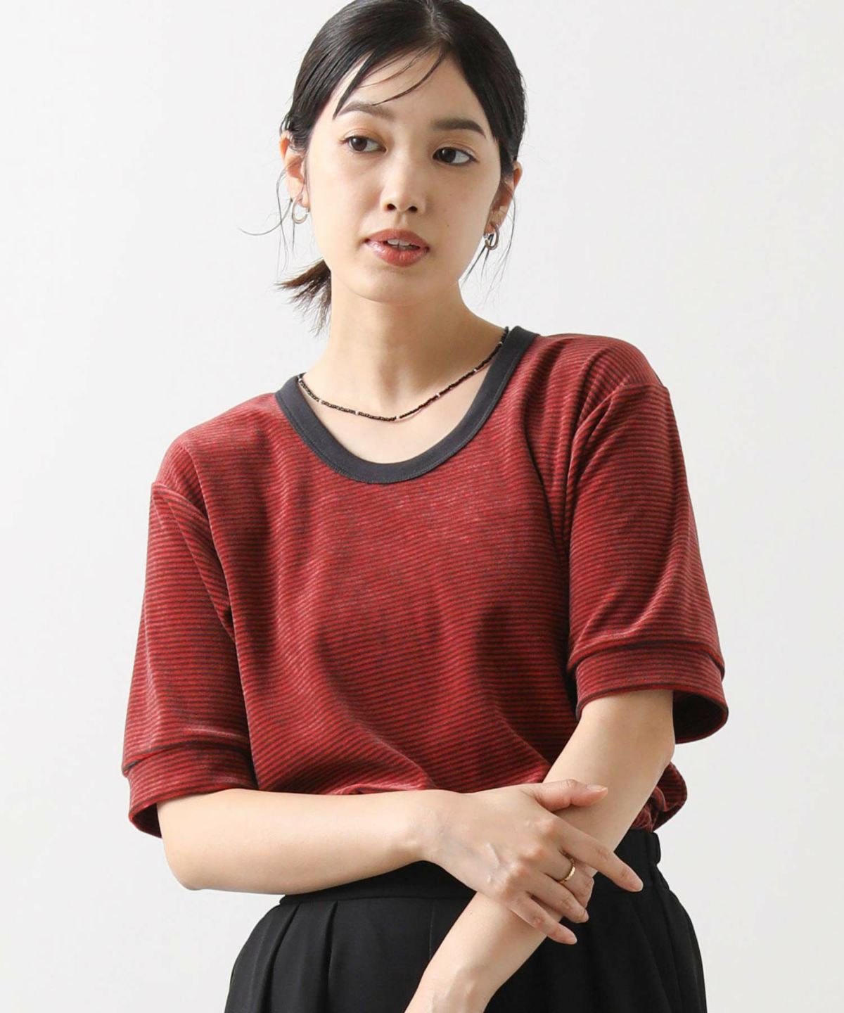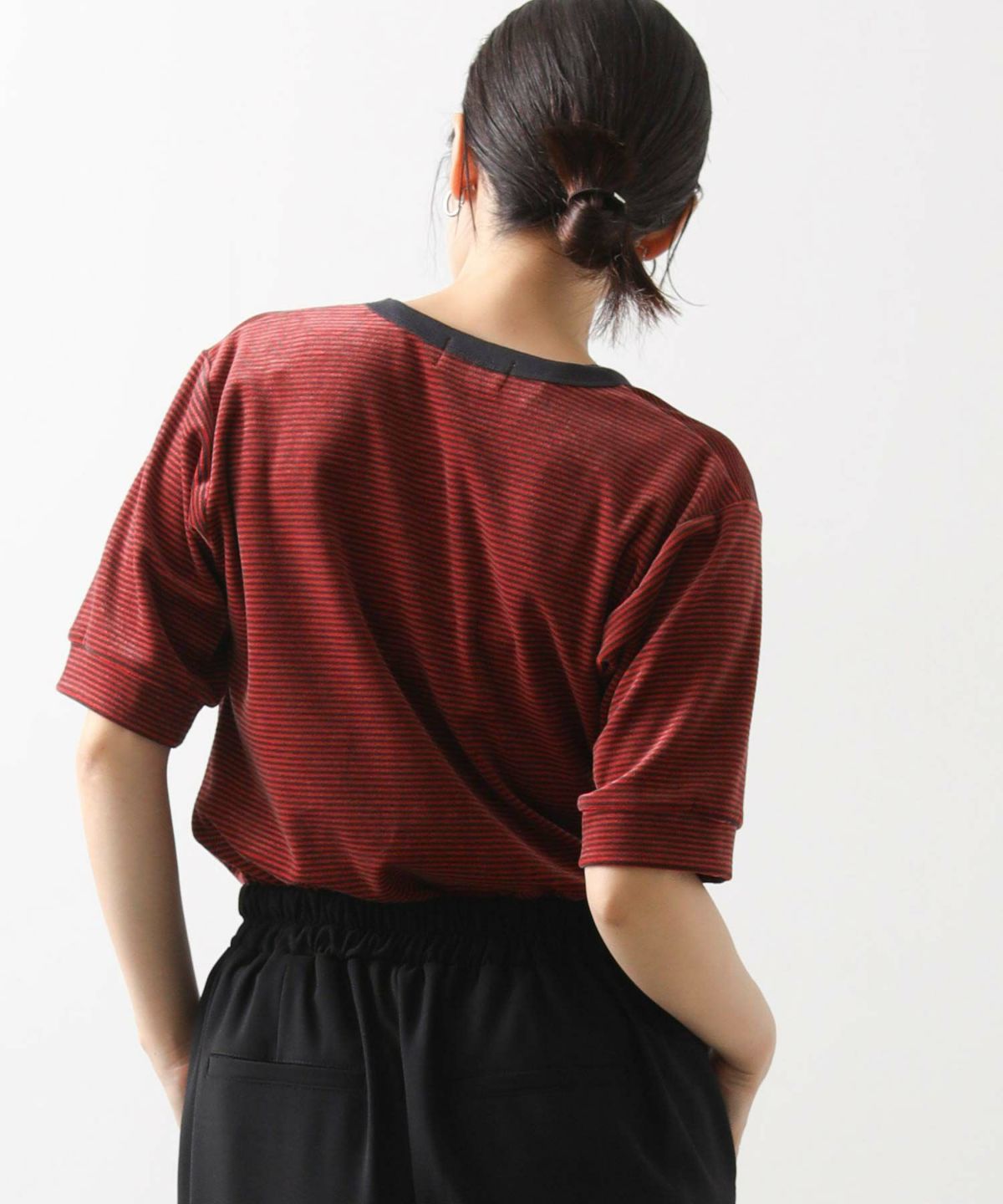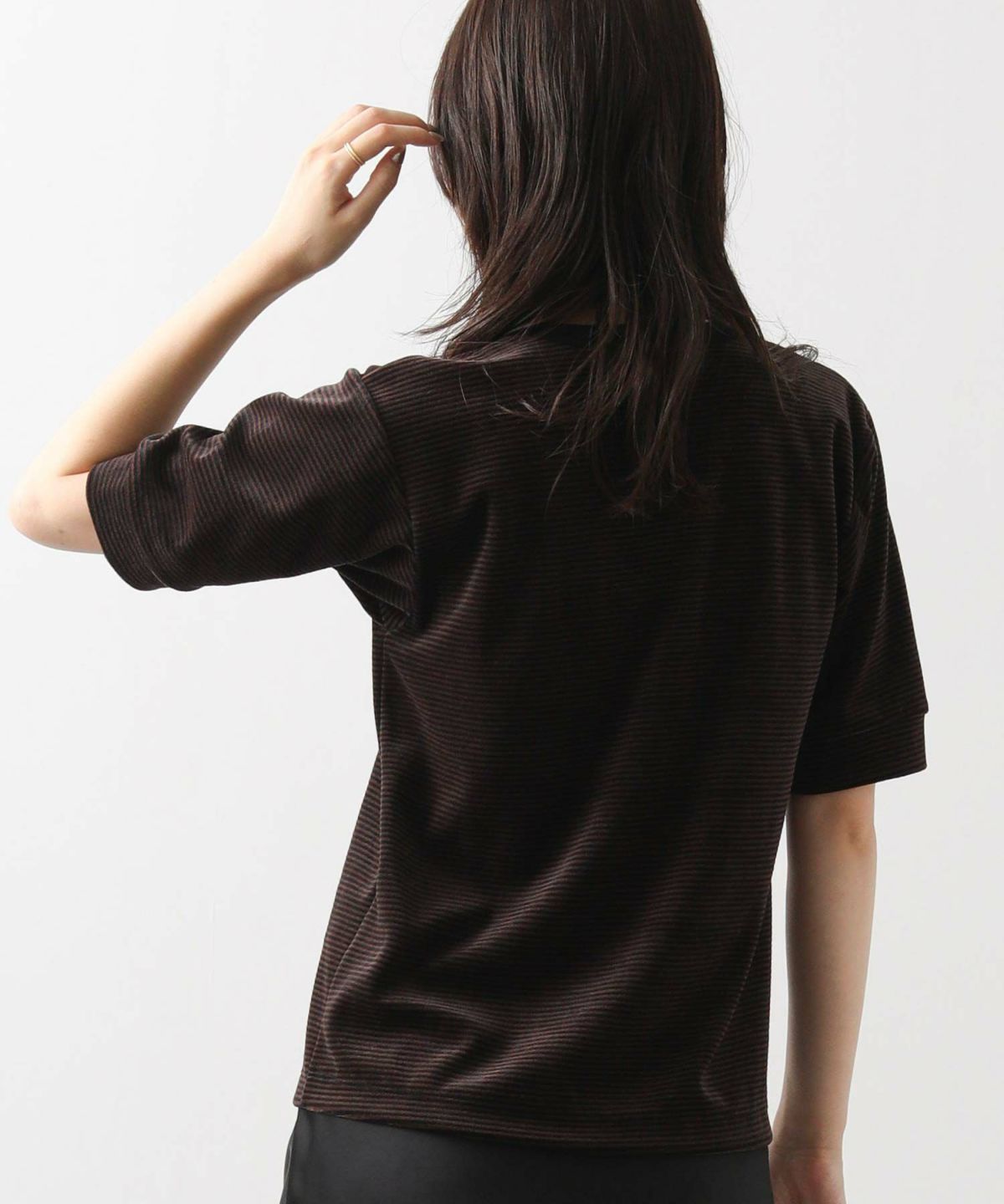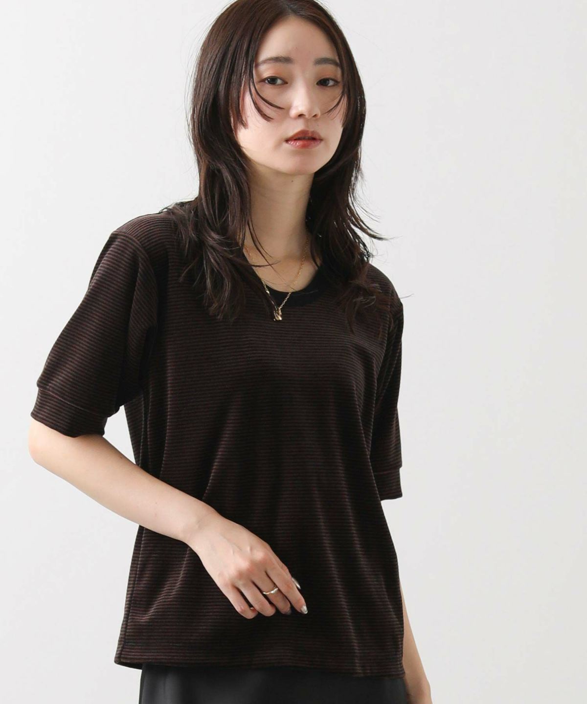 s.ベロアボーダー5分袖Tシャツ