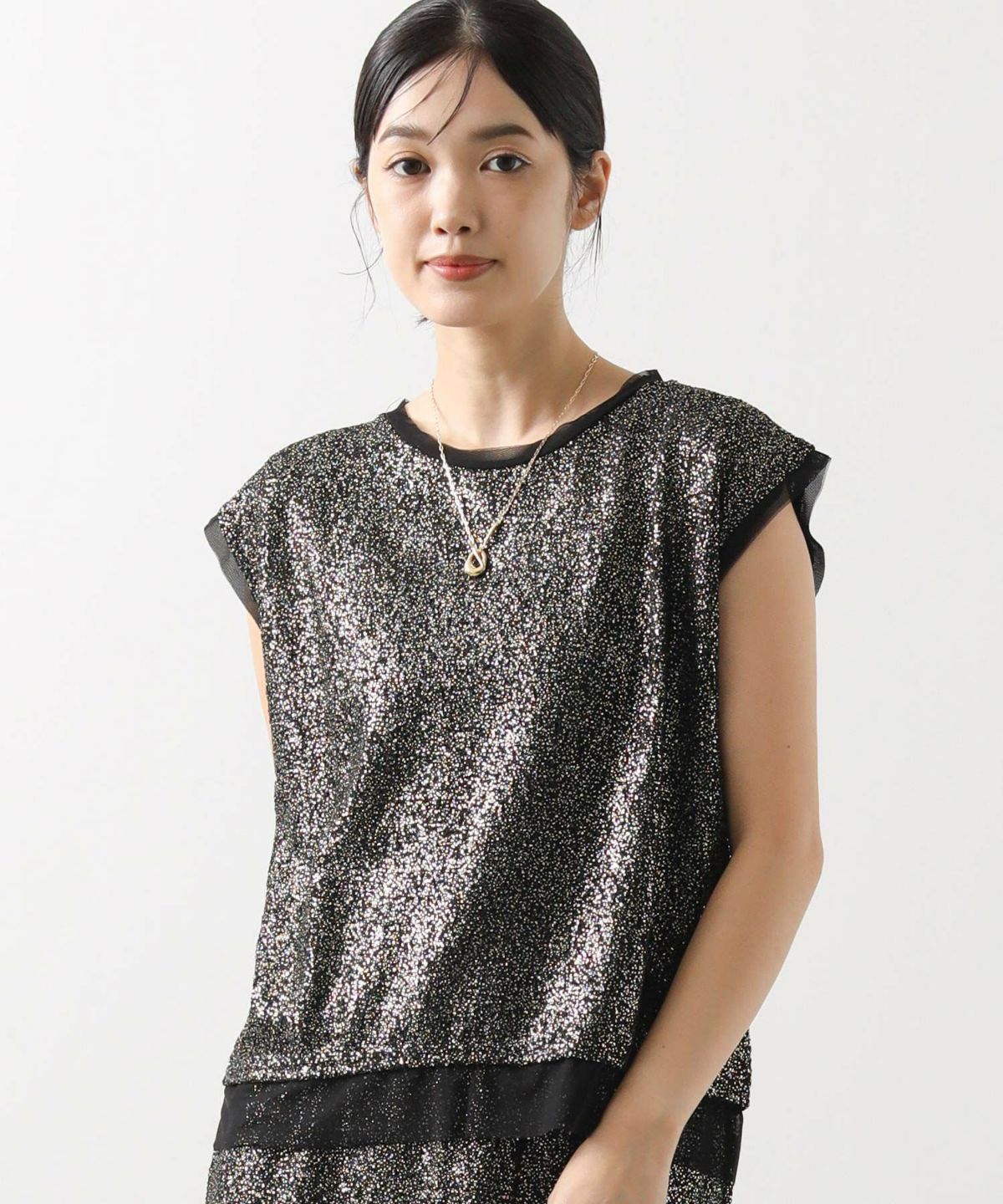 s.ボタンスリットスリーブショートトップス
