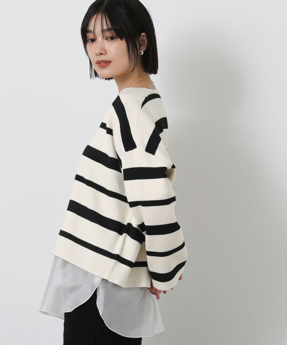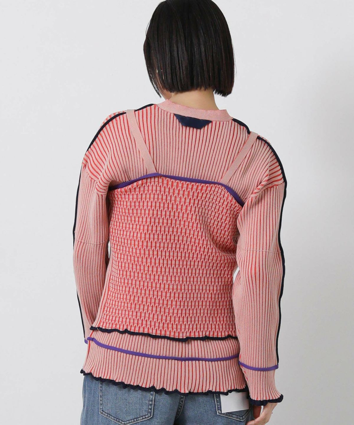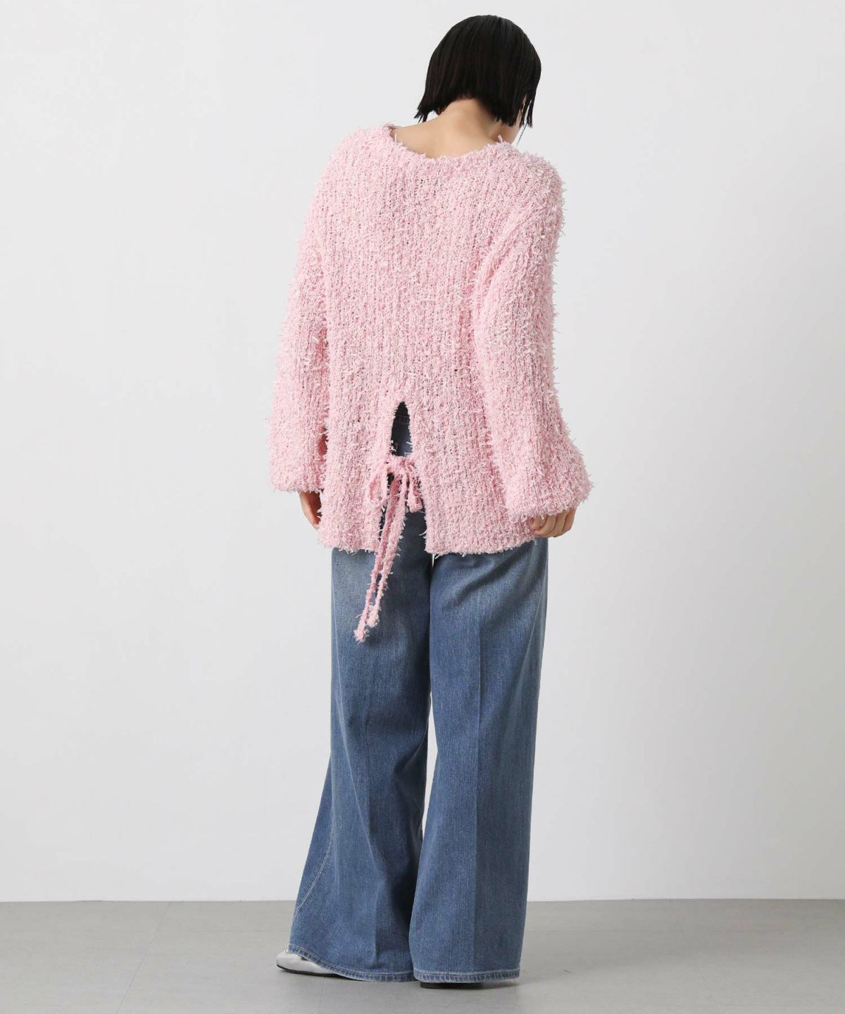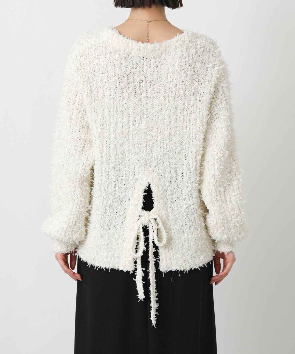 チュールメッシュバックリボンニット
