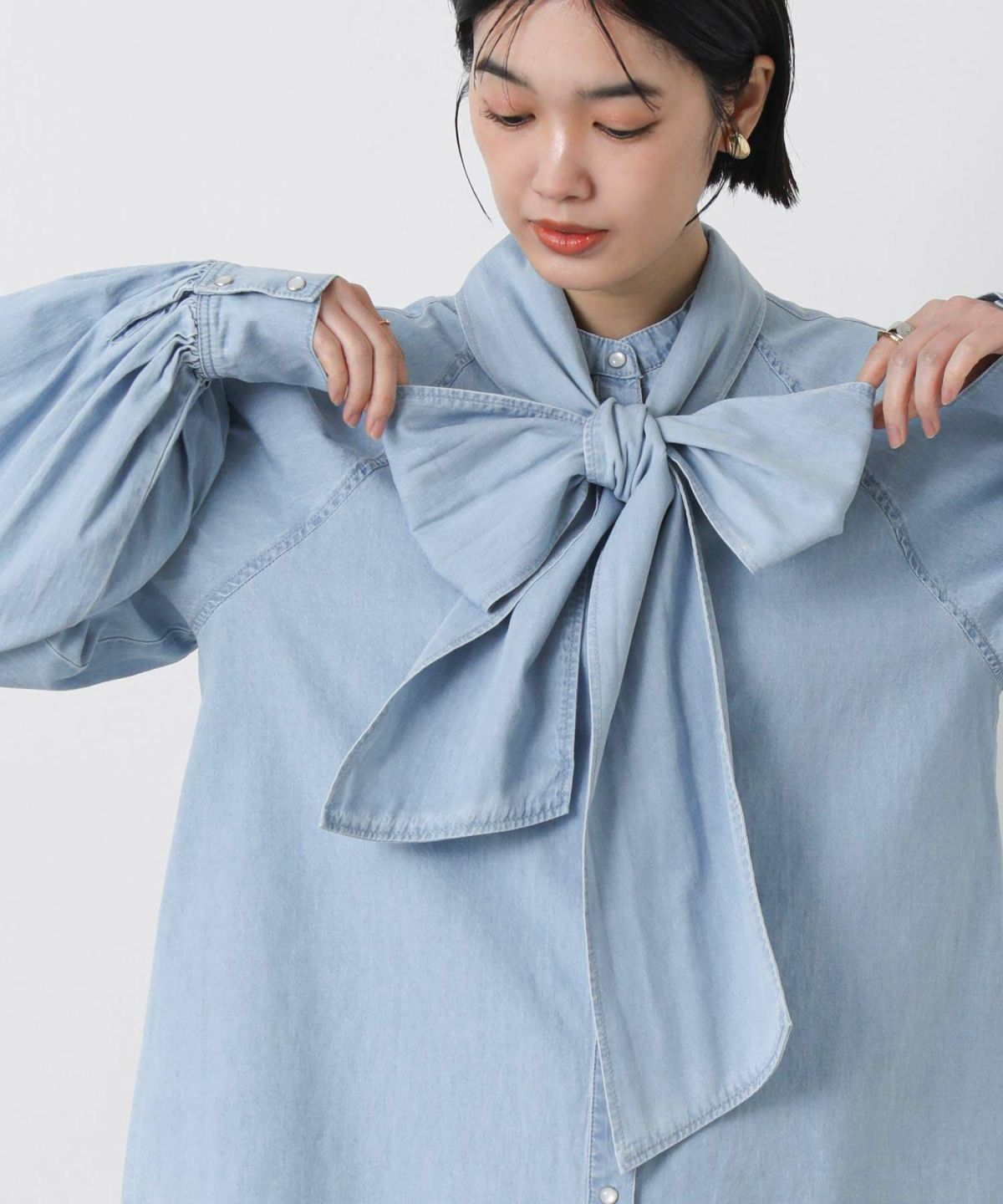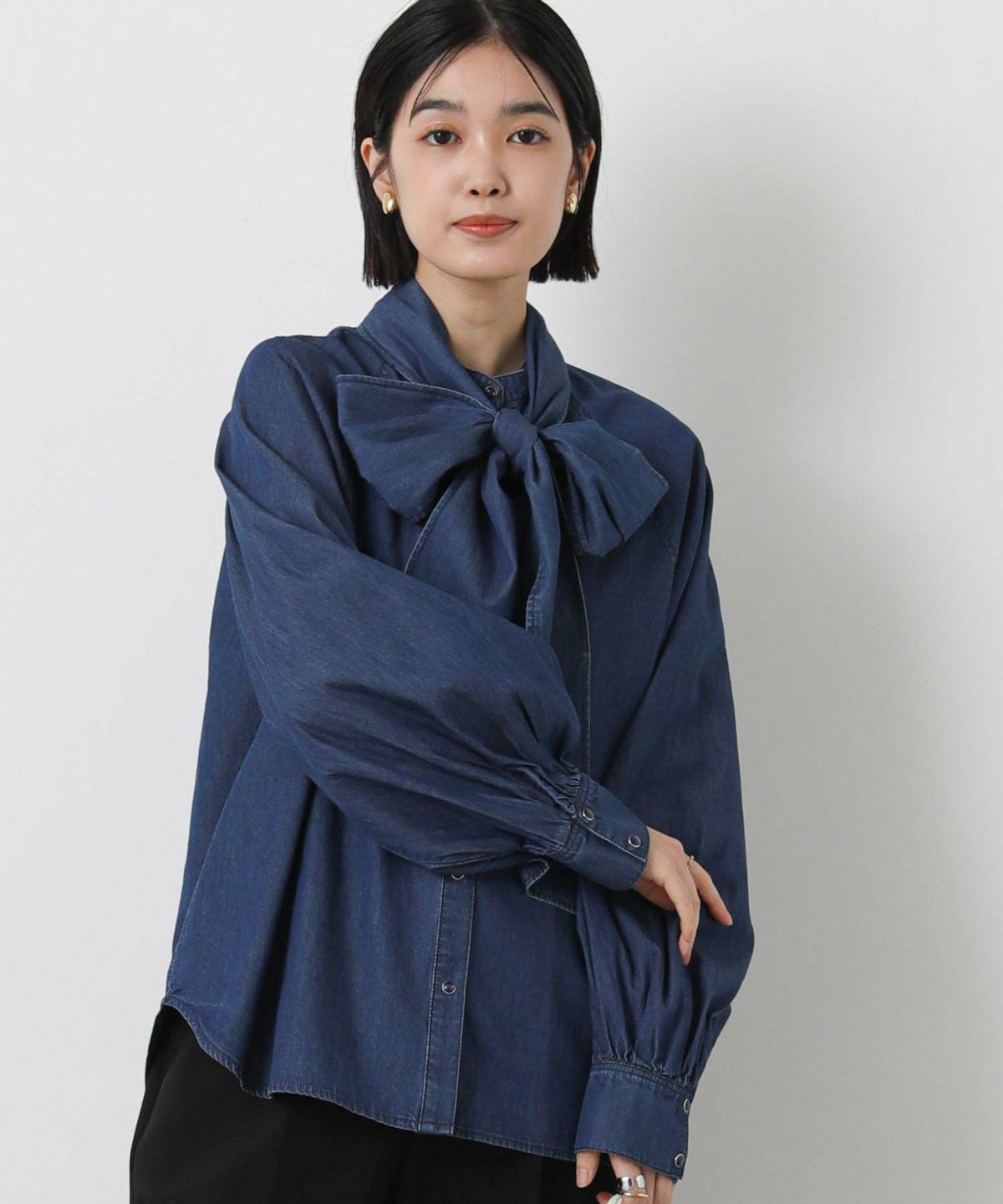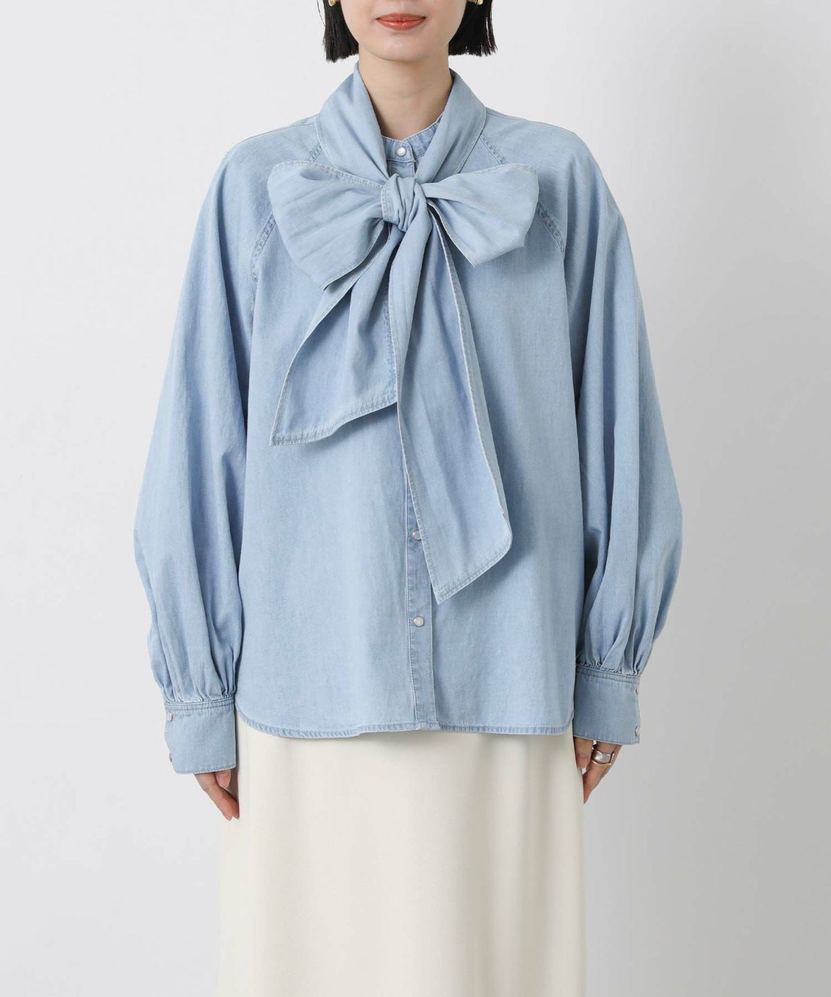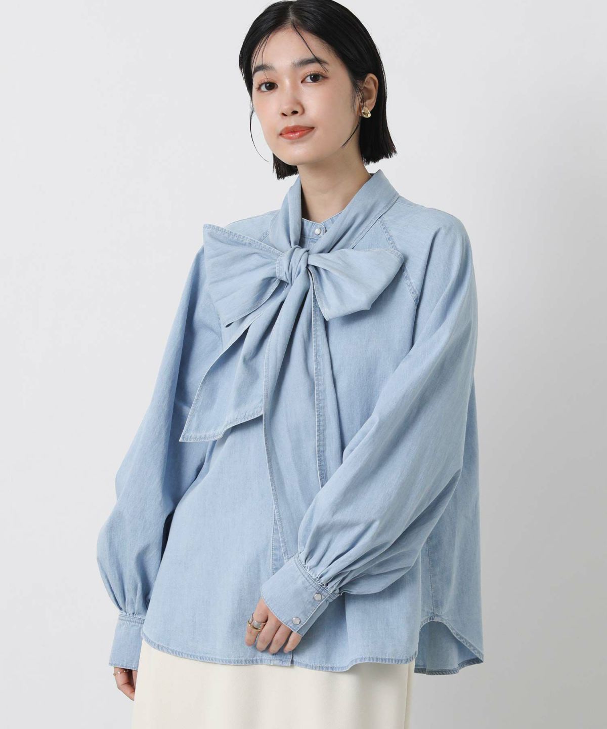 LUデニムリボンブラウス