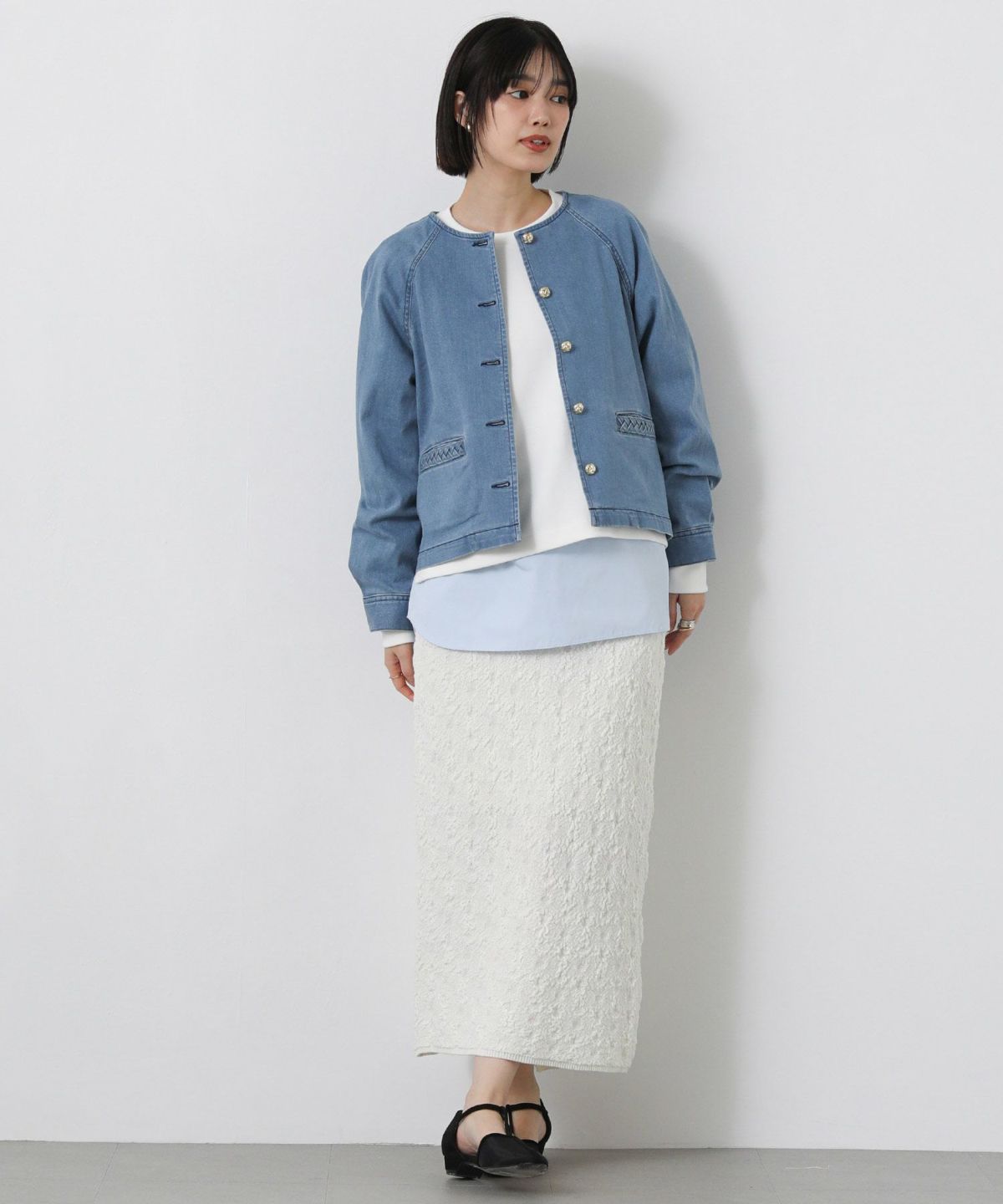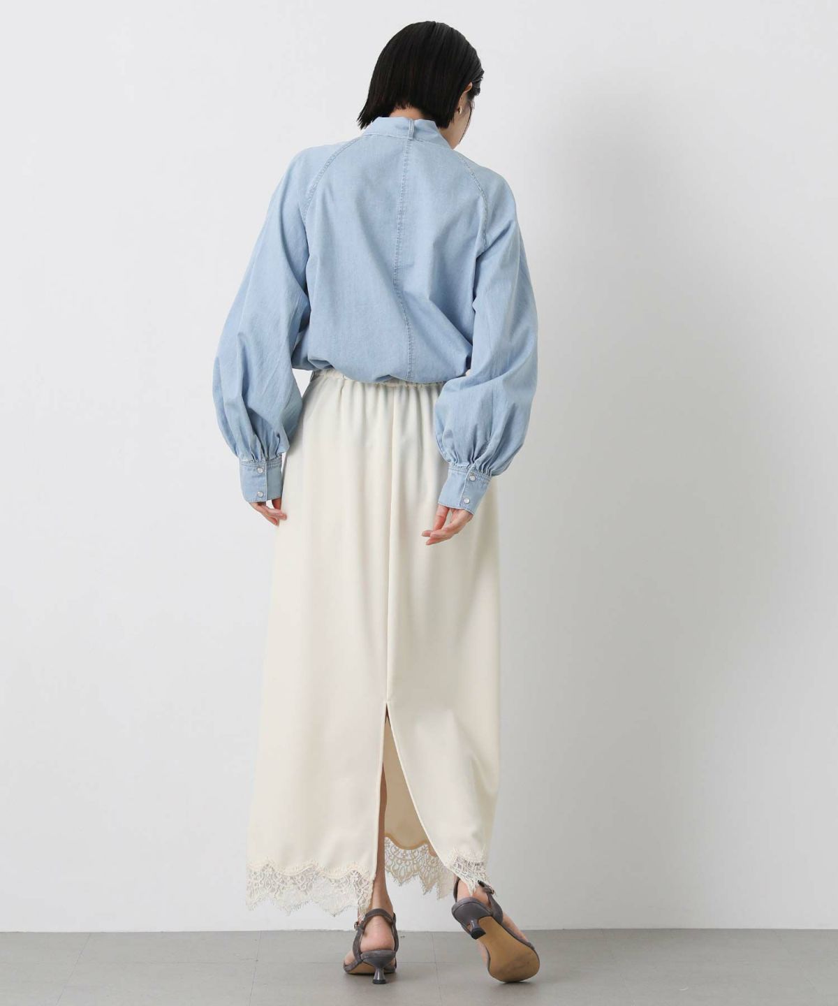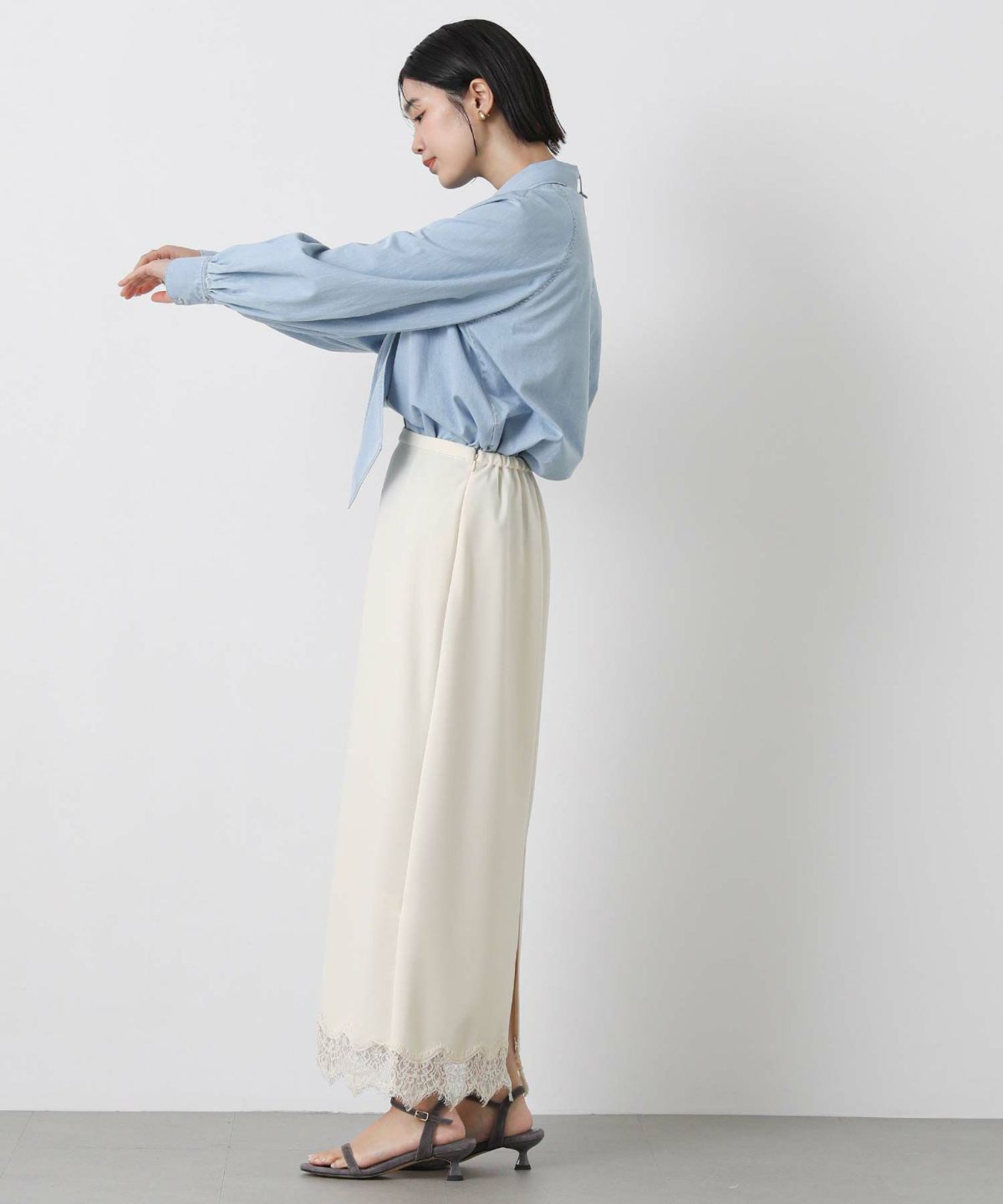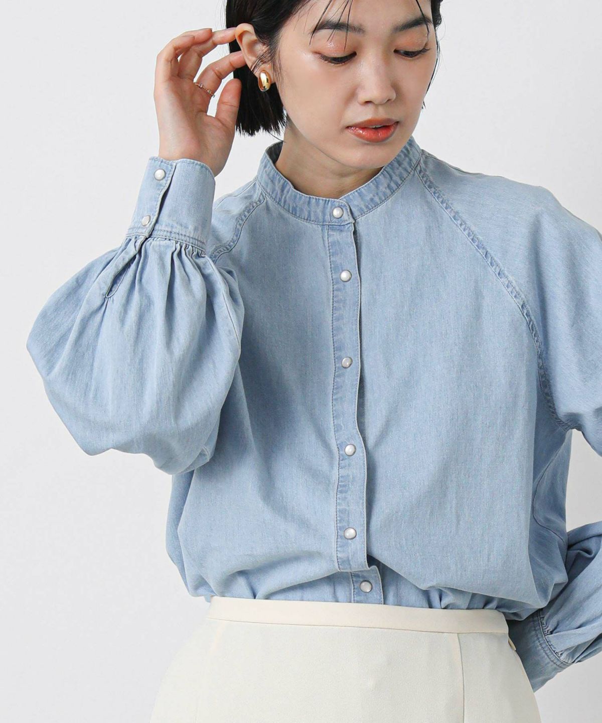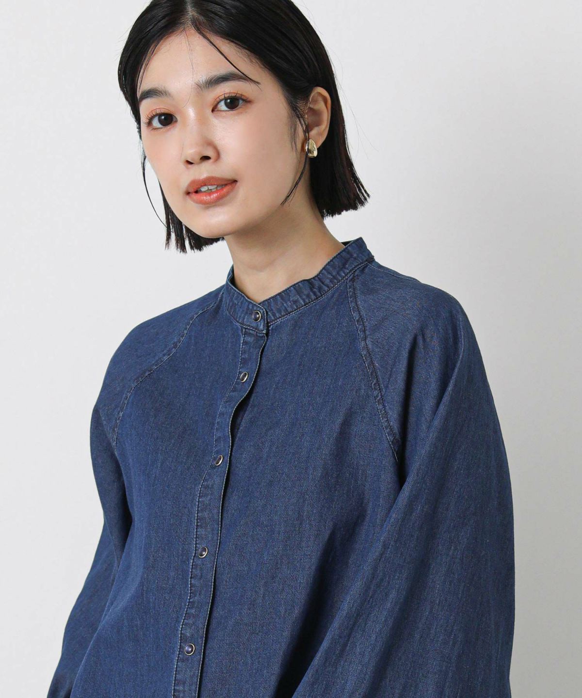 LUデニムリボンブラウス