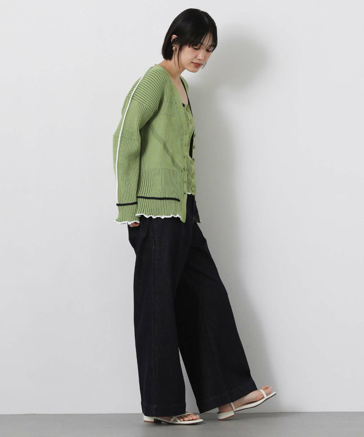 リブVネックカーディガンキャミSET