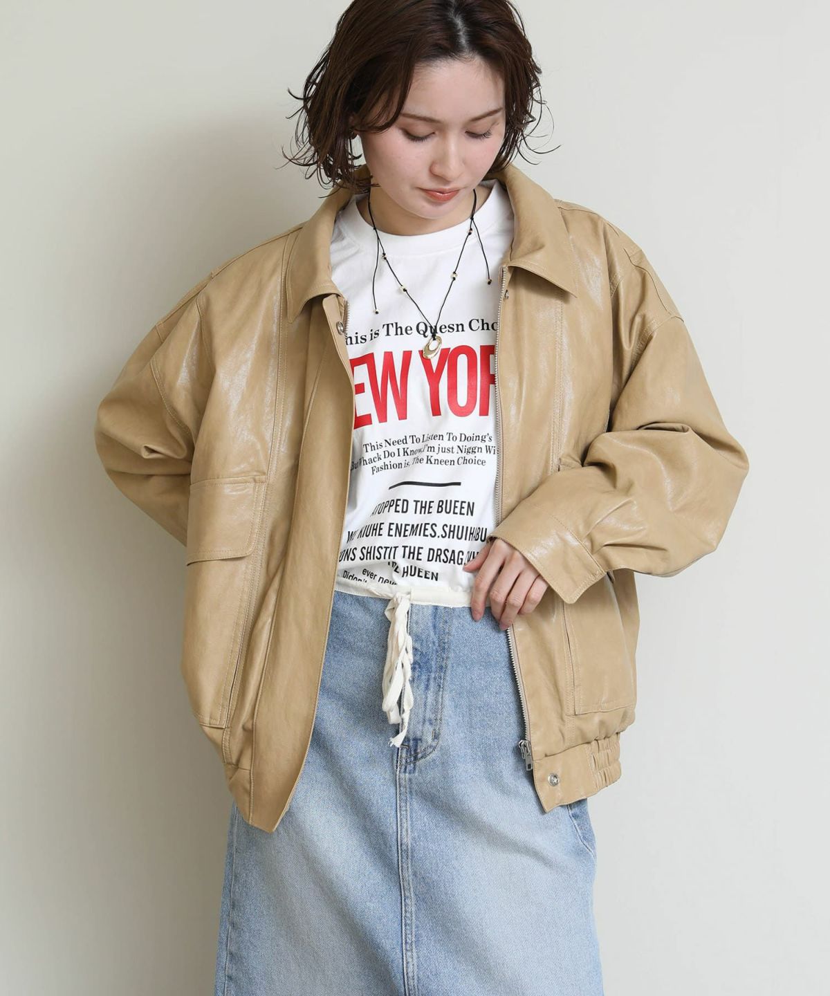 レザーライクブルゾン